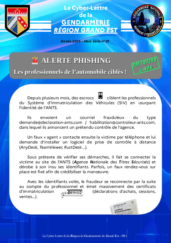 Ci-joint deux communications des référent cybersécurité de la Gendarmerie de Strasbourg.