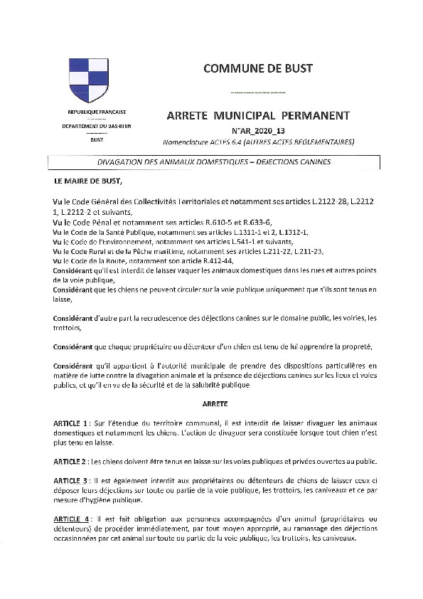 Suite aux nombreuses incivilités notamment des chiens non tenus en laisse, il est rappelé l’arrêté municipal en vigueur (voir document joint).