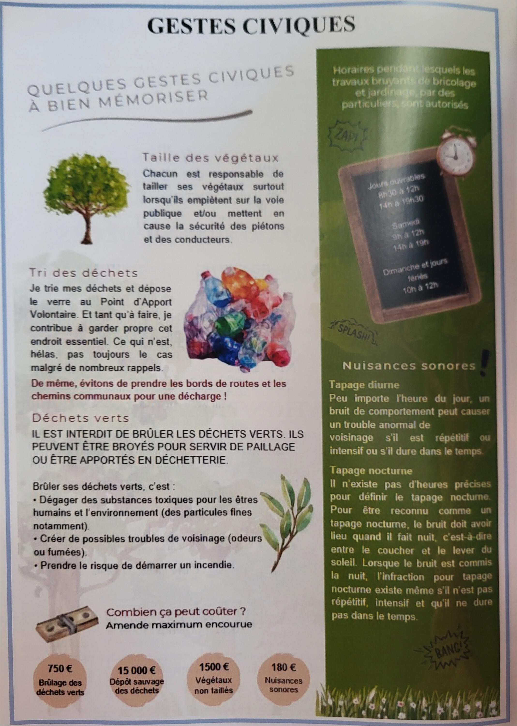 Dans le dernier bulletin municipal distribué au début de l'été. La municipalité avait écrit un article sur les gestes civiques relatifs aux nuisances sonores.
