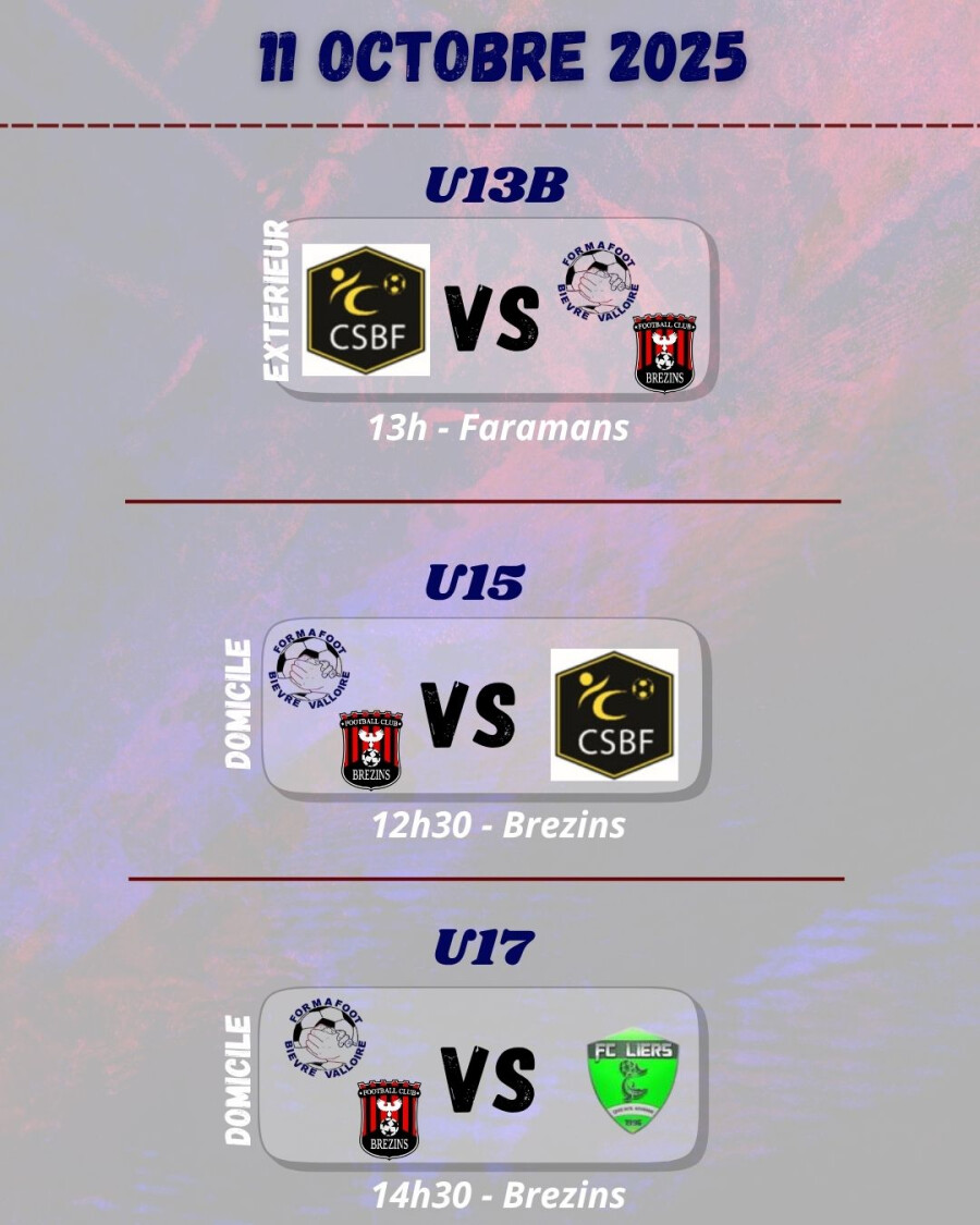 Match U17 à Brezins à 14H30 contre Ent Liers Ecbf Efde.