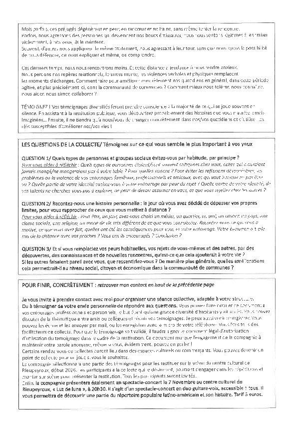 Ensuite, Vivian Couderc donne un certain nombre d’informations : proposition des consorts Neuser pour la vente de leurs 2 parcelles au prix de 180000€ : les élus considèrent que le prix est élevé et demandent au maire d’en informer les vendeurs ; une demande de pose de panneaux photovoltaïques par M Regourd route de Rivière va être déposée pour de l’auto-consommation ; la communauté de communes est en train de finaliser l’achat de l’ancien atelier Nattes, route de La Salvetat, pour une mise à disposition de M Neuman qui s’installe comme menuisier sur notre commune ; enfin la date des vœux à la population est fixée au vendredi 09 janvier à 19h, Maison pour tous, toute la population est invitée.