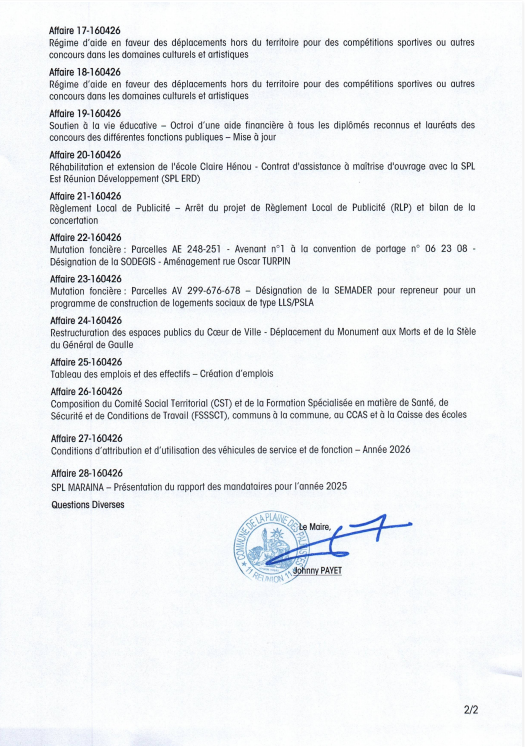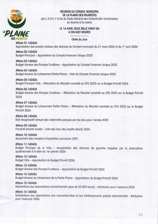 ℹ️ Ce samedi 21 mars, l’aire couverte de la commune accueillera la première réunion du Conseil Municipal de la mandature 2026/2032.