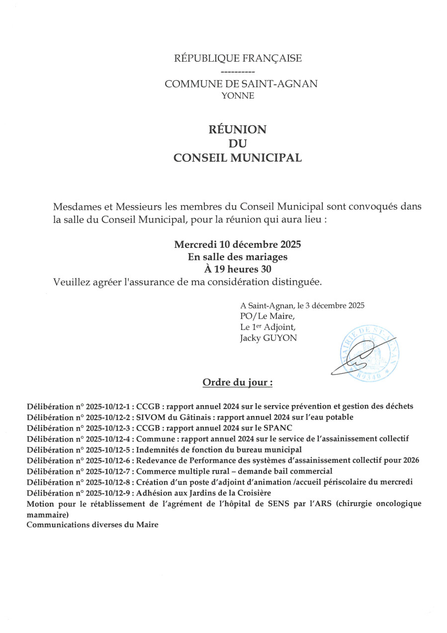 Le prochain conseil municipal