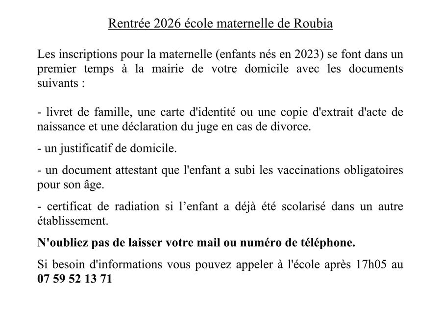 Pour tout renseignement complémentaire, merci de contacter la mairie.