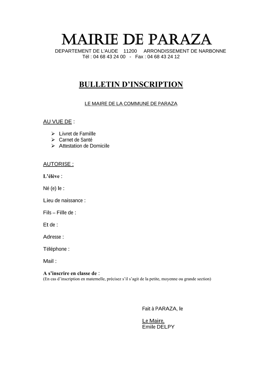 Ci-joint le formulaire à compléter et à retourner à la mairie