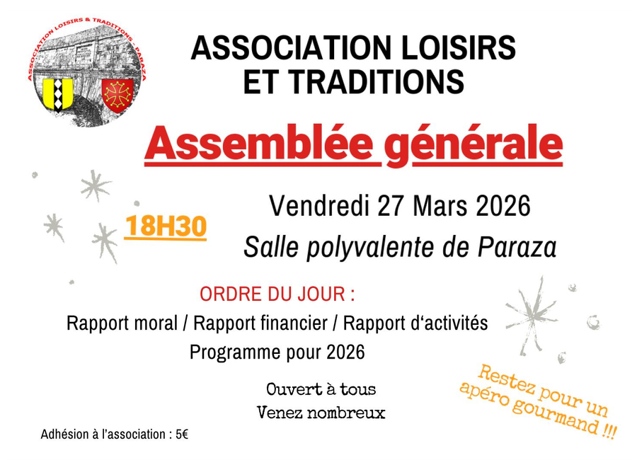 La Commune de Paraza a été reconnue en état de catastrophe naturelle par arrêté du 13 février 2026 (publié au journal officiel) au titre des phénomènes de pluie, inondation et coulées de boue, survenus entre le 17 janvier 2026 et le 20 janvier 2026.