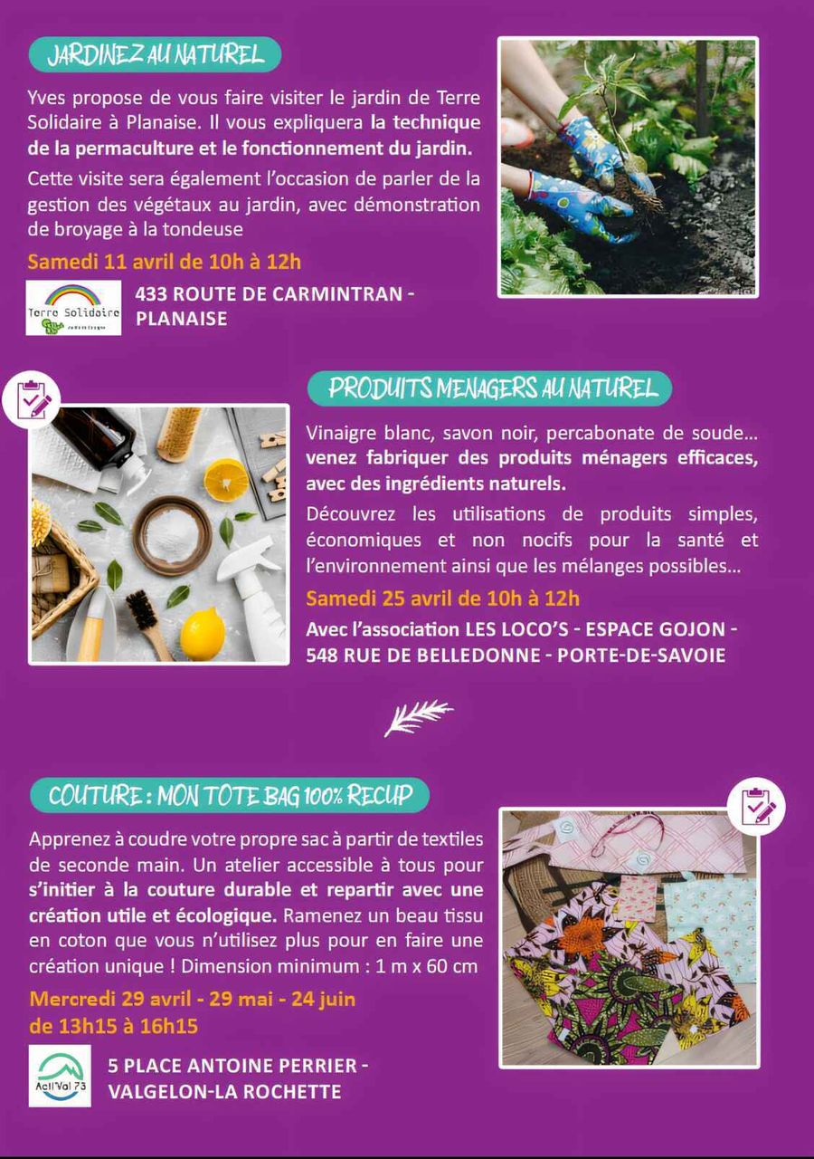 Ce cycle d'atelier est soutenu par la Communauté de communes Cœur de Savoie et l'ADEME. Il vous est donc proposé gratuitement.