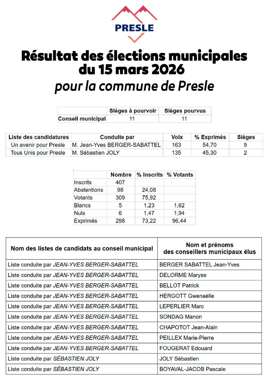 Chers Preslerains et Chères Presleraines,