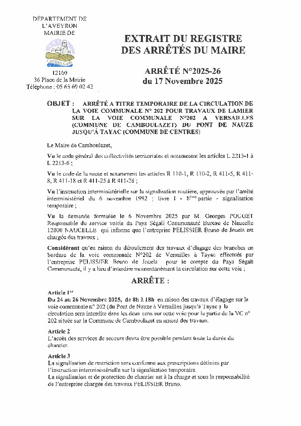 Des travaux d'élagage sont prévus le long de la voie communale de Versailles à Tayac