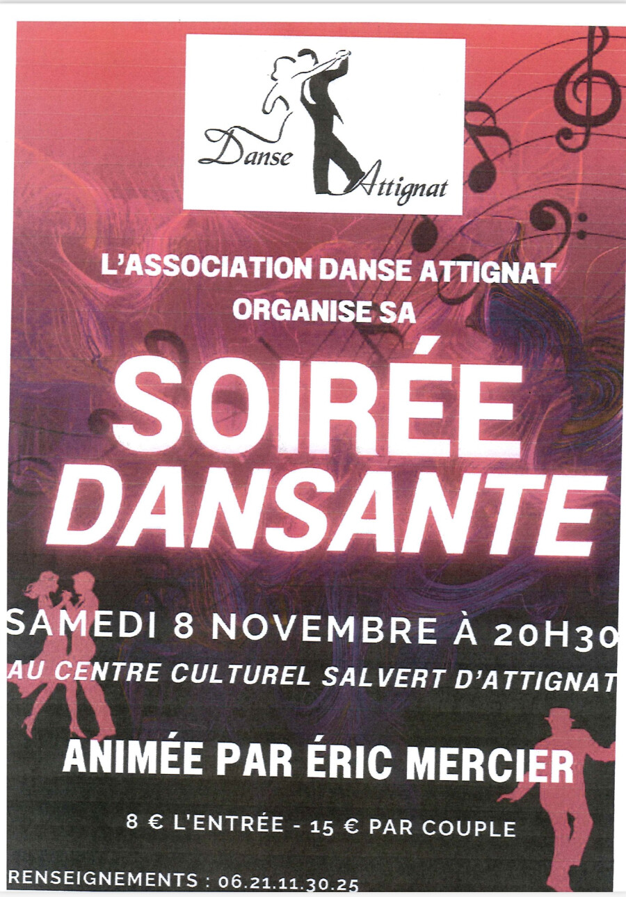 💃🏼 sa soirée dansante prévue le samedi 8 novembre au Centre Culturel de l’Espace Salvert