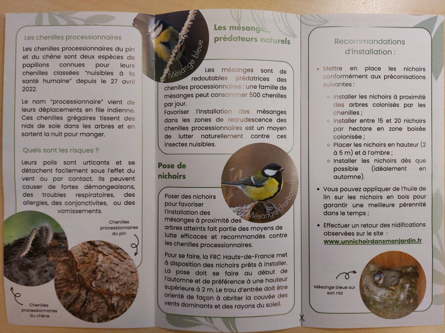 En partenariat avec la Fédération Régionale des Chasseurs qui fournissent les nichoirs, une campagne de lutte biologique contre les chenilles processionnaires est lancée.