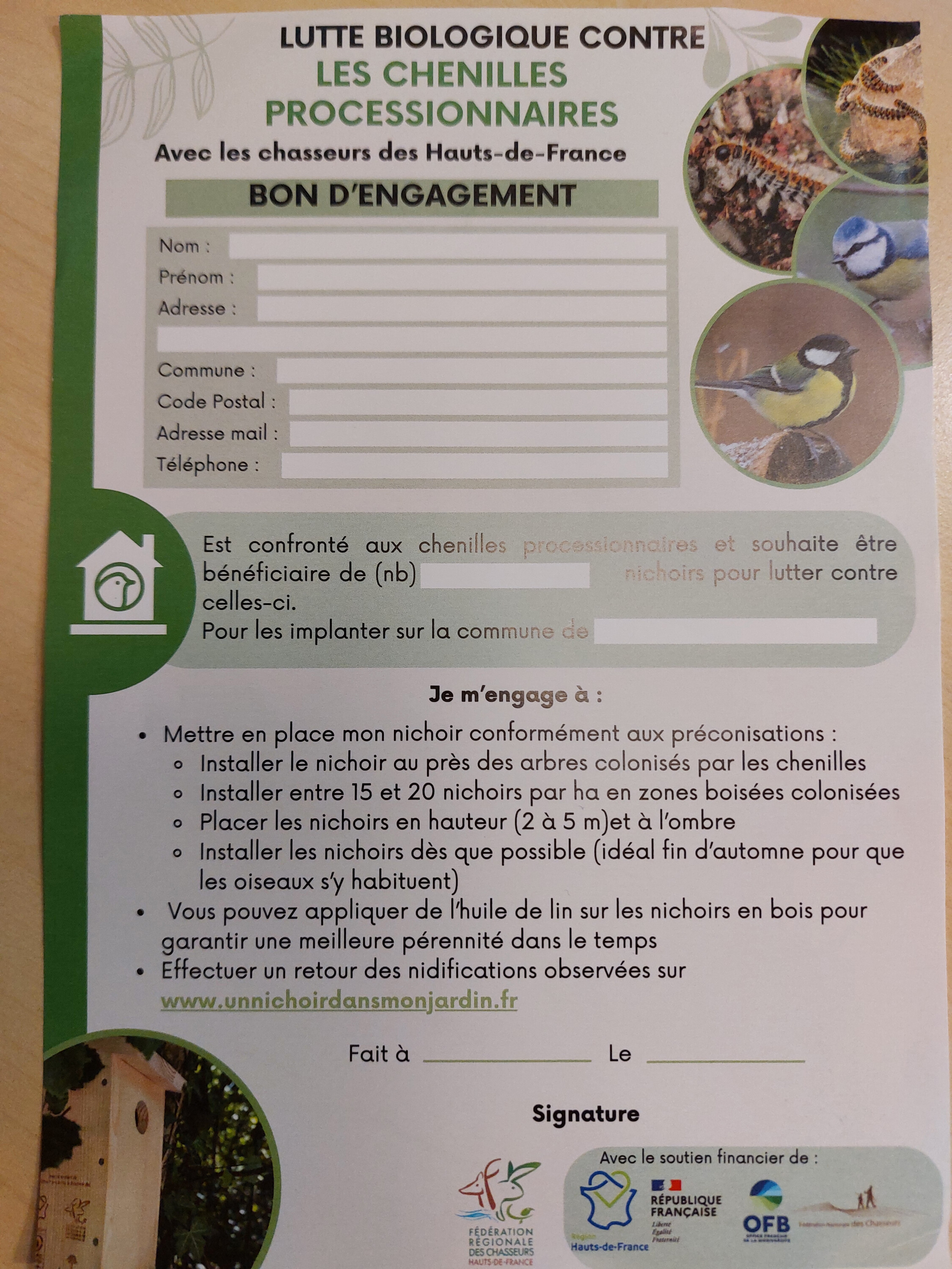 Un bon d'engagement sera à compléter et un retour d'information sur la présence de Mésanges dans ces nichoirs sera demandé.