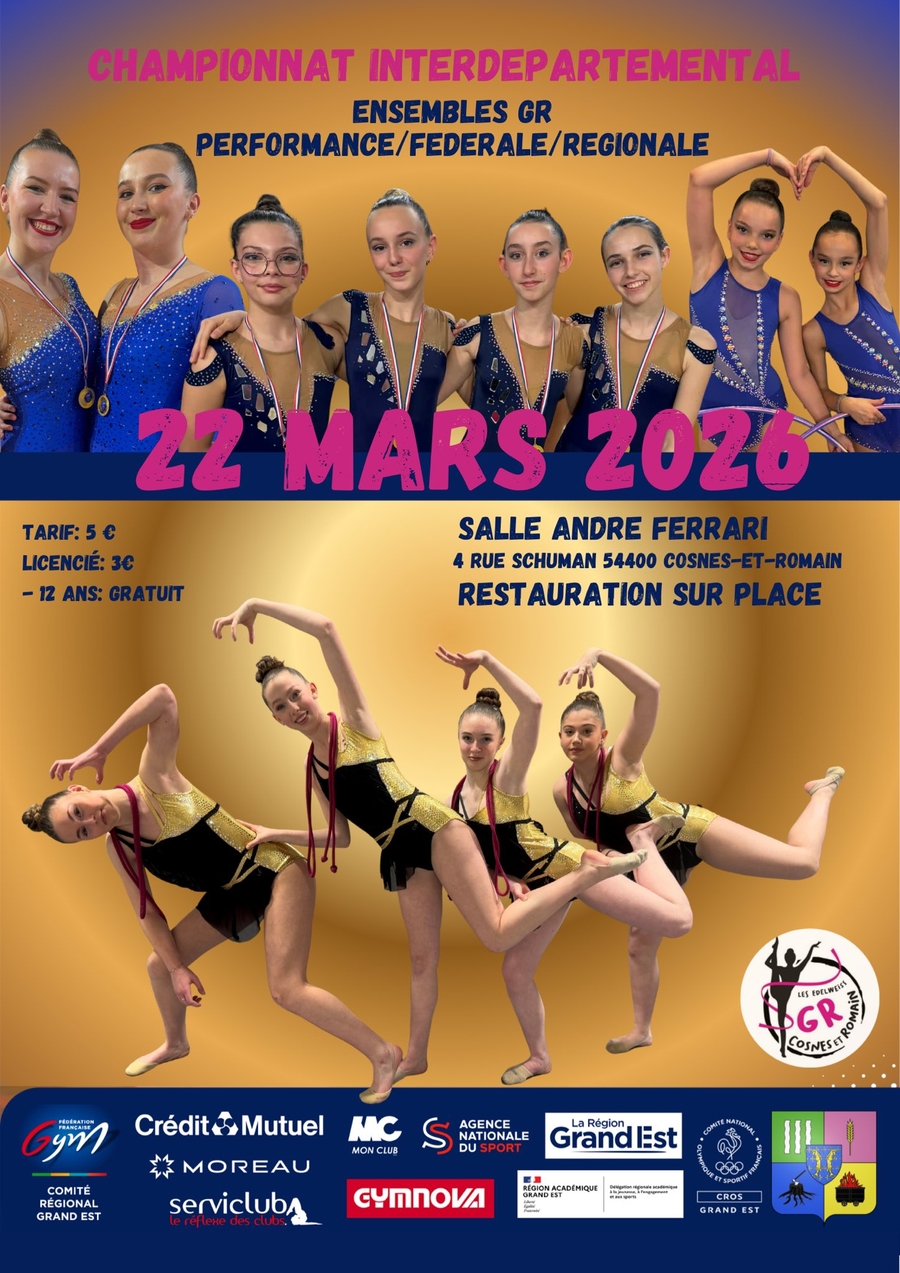 Dimanche 22 mars : championnat interdépartemental des ensembles qui comme dimanche 08 mars verra la venue des clubs de Moselle et Meurthe et Moselle (plus de 200 gymnastes également).