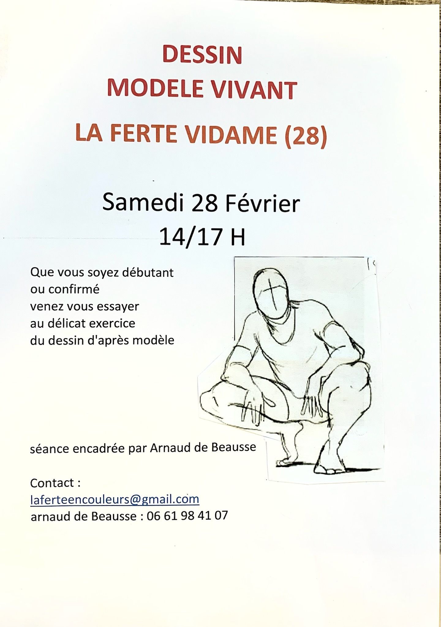 La Ferté en Couleurs propose une séance de dessin avec modèle le samedi 28 Février de 14 à 17h en son atelier (presbytère)
