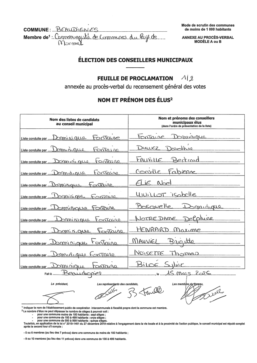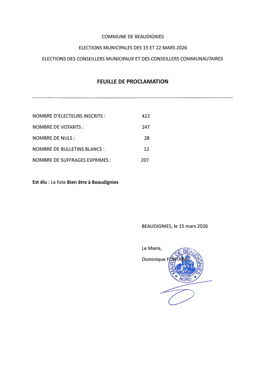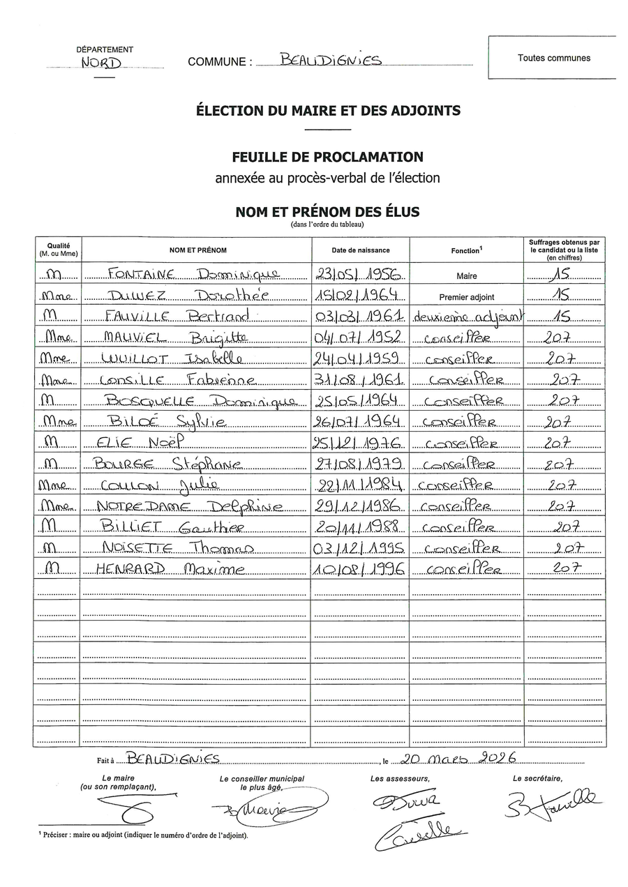 Voici ce qui a été voté lors du conseil municipal d'installation du 20 mars 2026 :