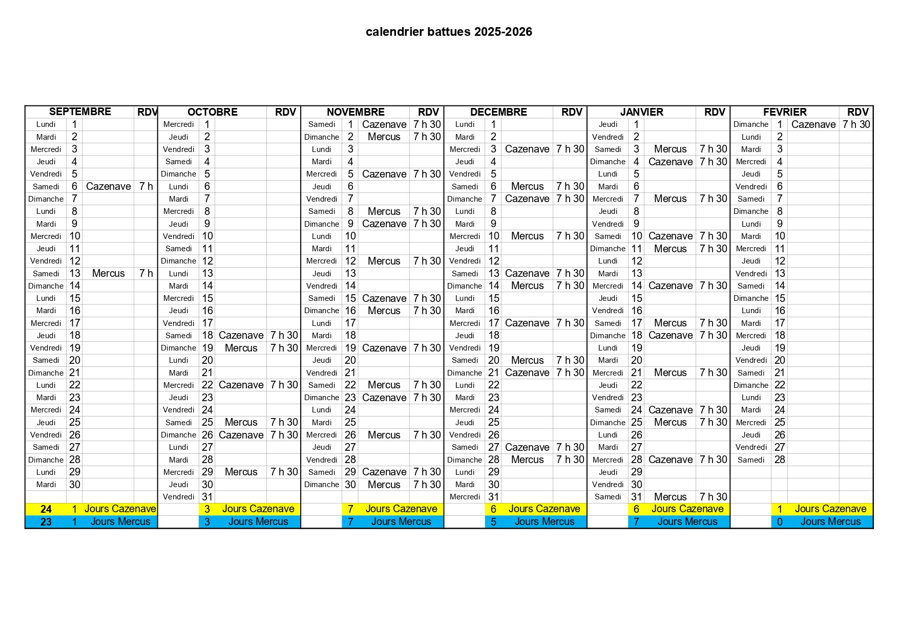 Vous trouverez ci-joint le calendrier des jours de chasse des battues au sanglier 🐗 pour