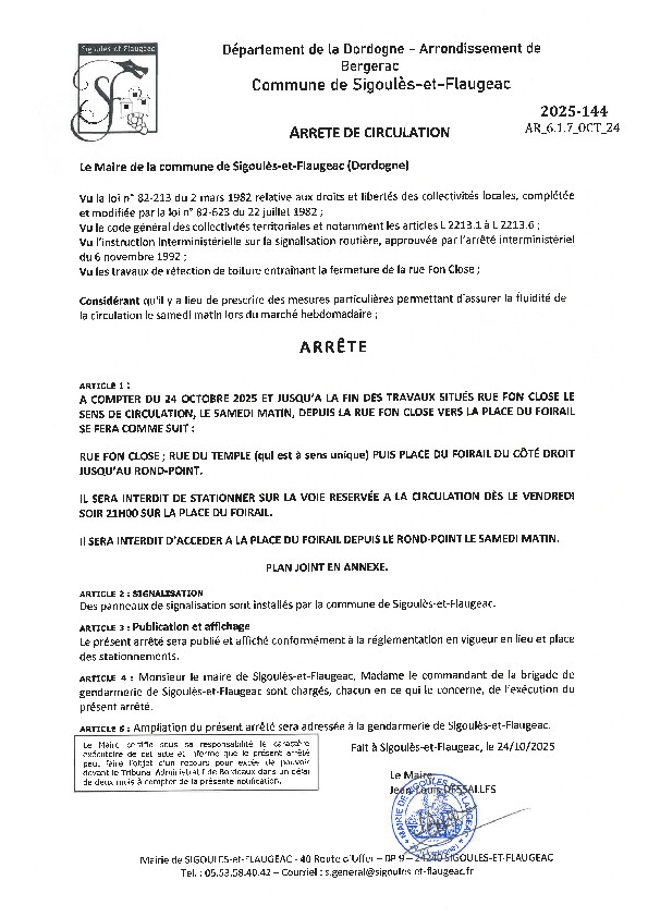 Valable les samedis matins pendant toute la durée de la fermeture de la Rue Fon Close