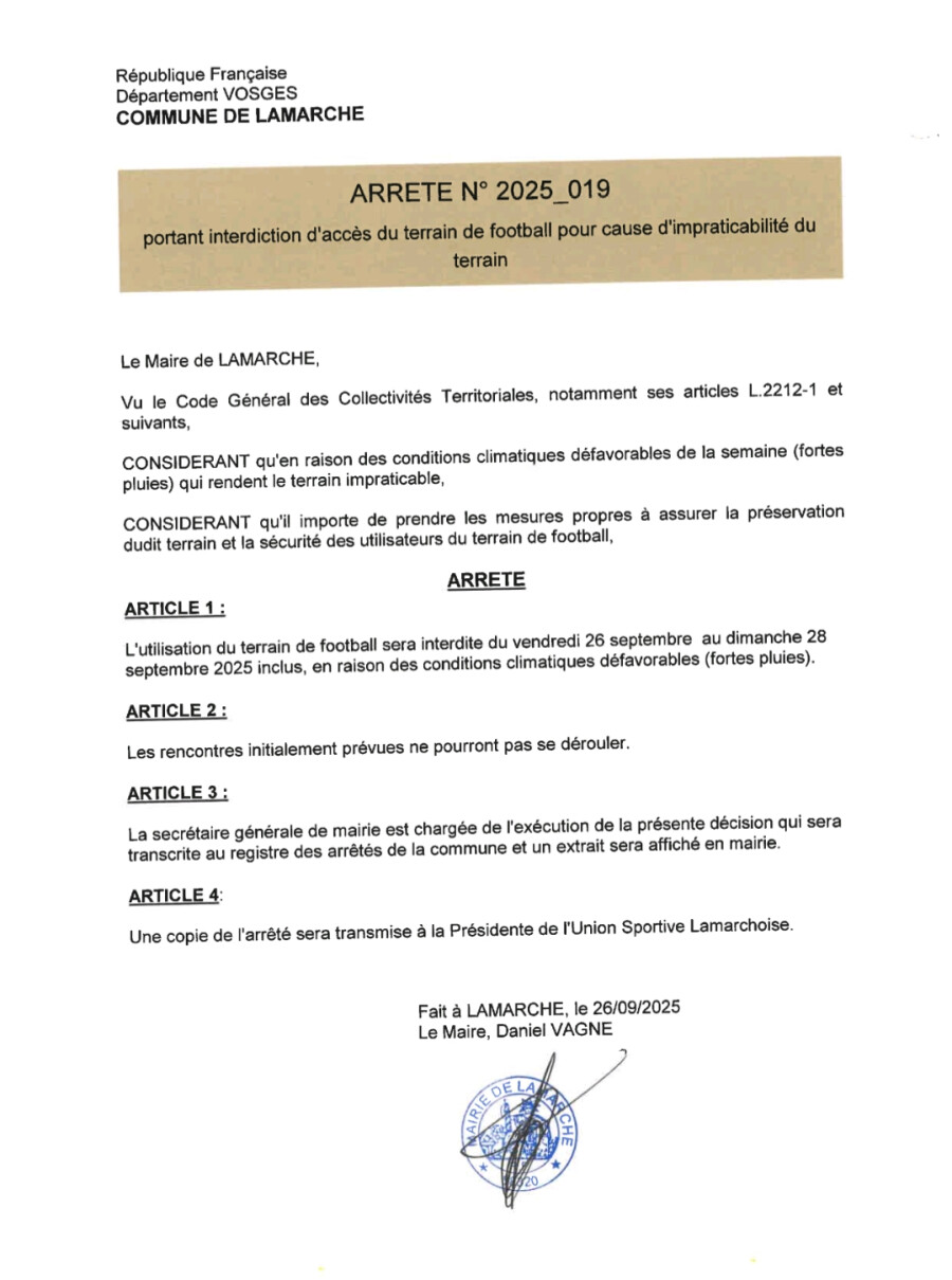L'agence postale de Lamarche sera exceptionnellement fermée