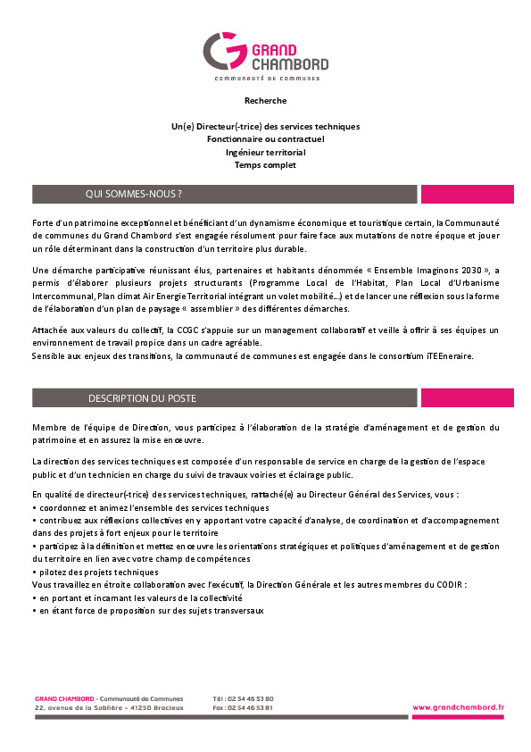 Poste de VTA Commande Publique à pourvoir sur la Communauté de communes du Grand Chambord.