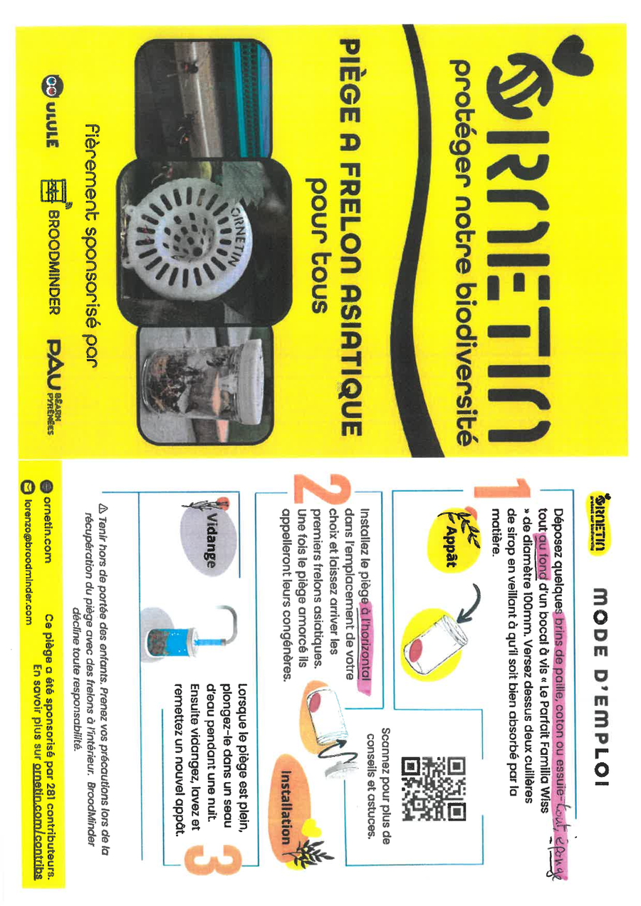 Dans ce cadre, un référent "frelon asiatique" est identifié sur chaque commune du territoire Cagire Garonne Salat.