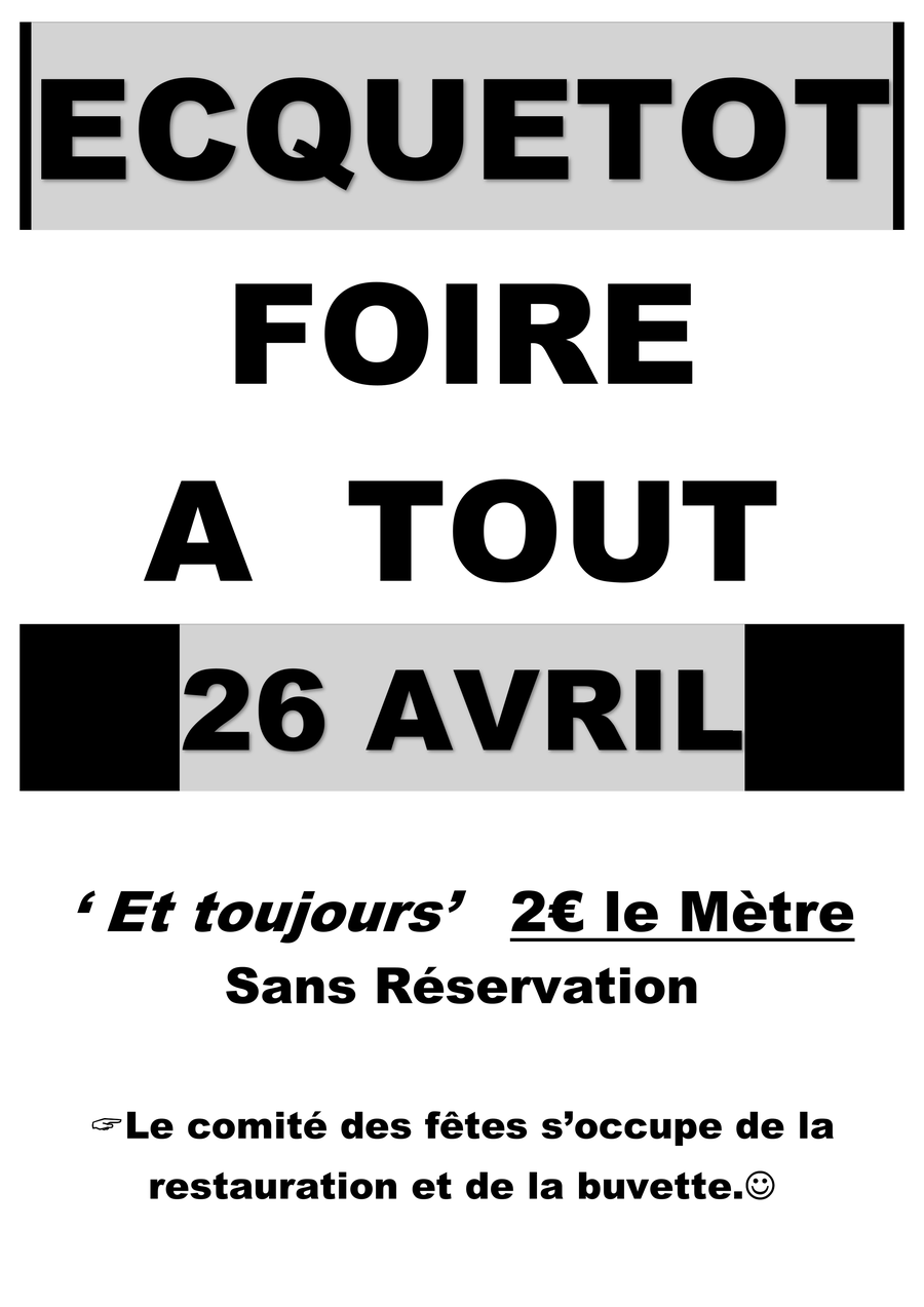 Le Comité des fêtes organise sa traditionnelle Foire à Tout .