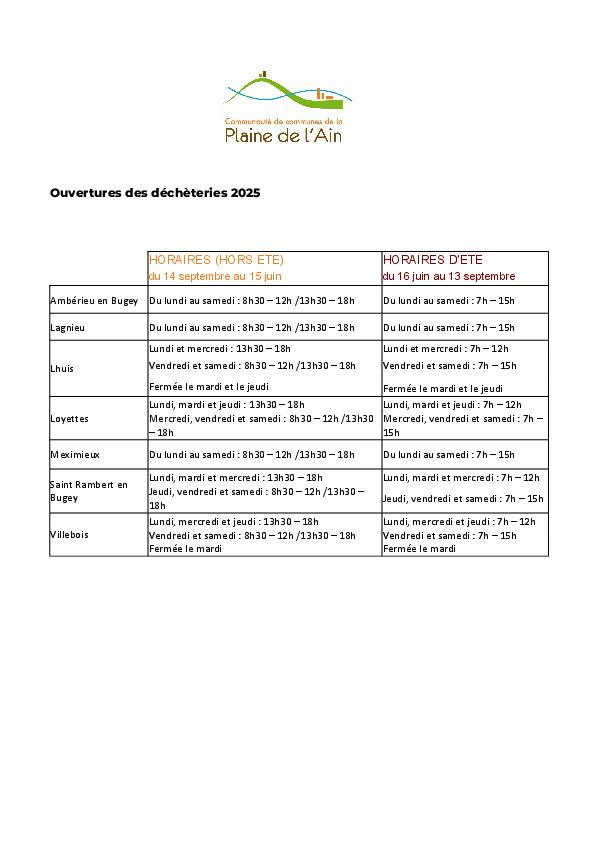 Vous trouverez la liste et les horaires de ces déchèteries ci-dessous.