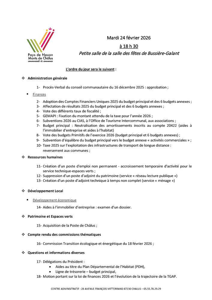 Le conseil communautaire se tiendra