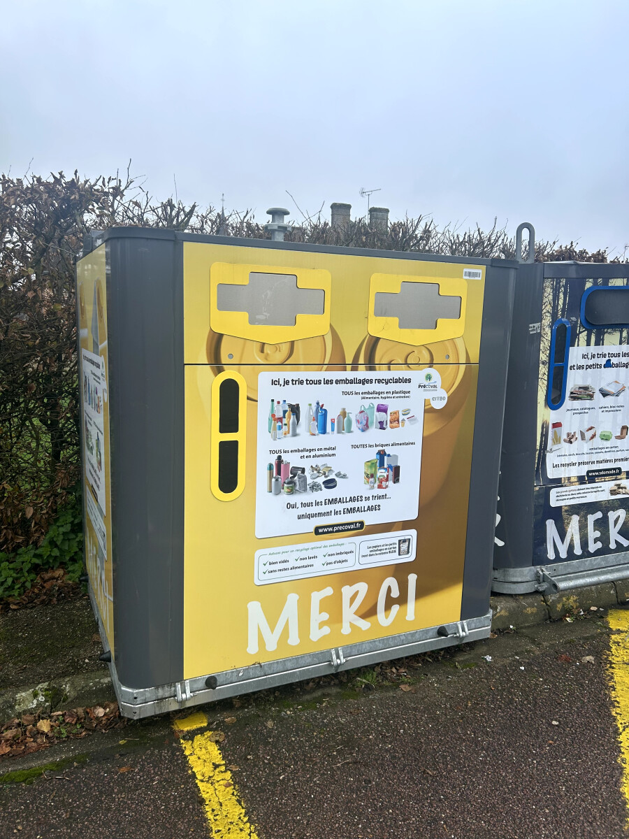 Une colonne de tri pour les emballages recyclables est installée sur le parking poids lourds de la commune de Duranville
