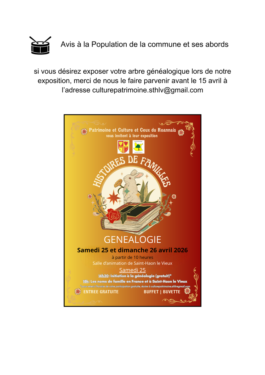 La prochaine réunion du conseil municipal se tiendra le lundi 20/04 à 20H en Mairie de Saint-Haon-le-Vieux.