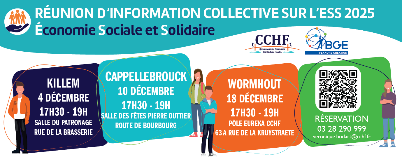 Mise en place de réunions d'informations sur l'ESS Economie Sociale et Solidaire en partenariat avec BGE Flandre Création.