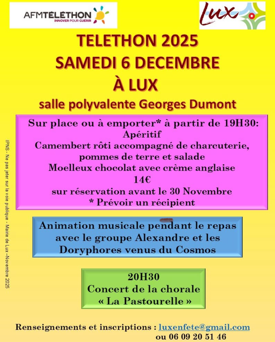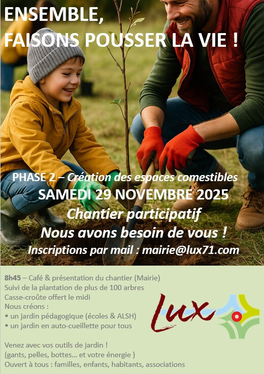 Merci de vous inscrire avant le 19/11 sur mairie@lux71.com
