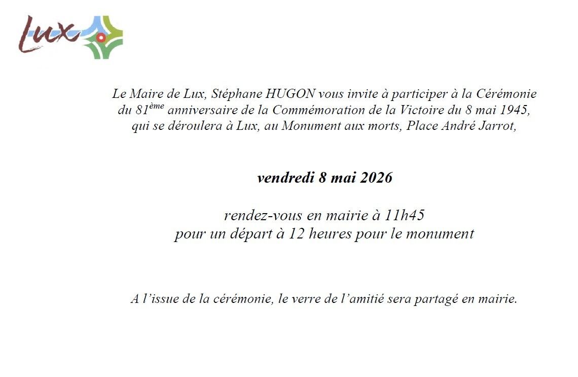 rendez-vous à 11h45 en mairie de LUX, départ à 12h pour le monument.