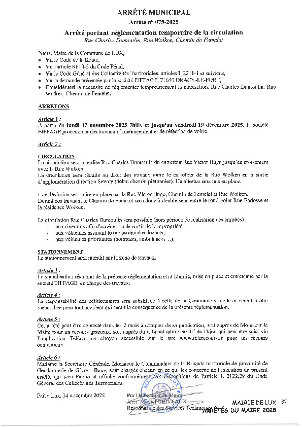 Cette organisation est mise en place pour une période transitoire, suite à la dissolution du corps communal de Lux.
