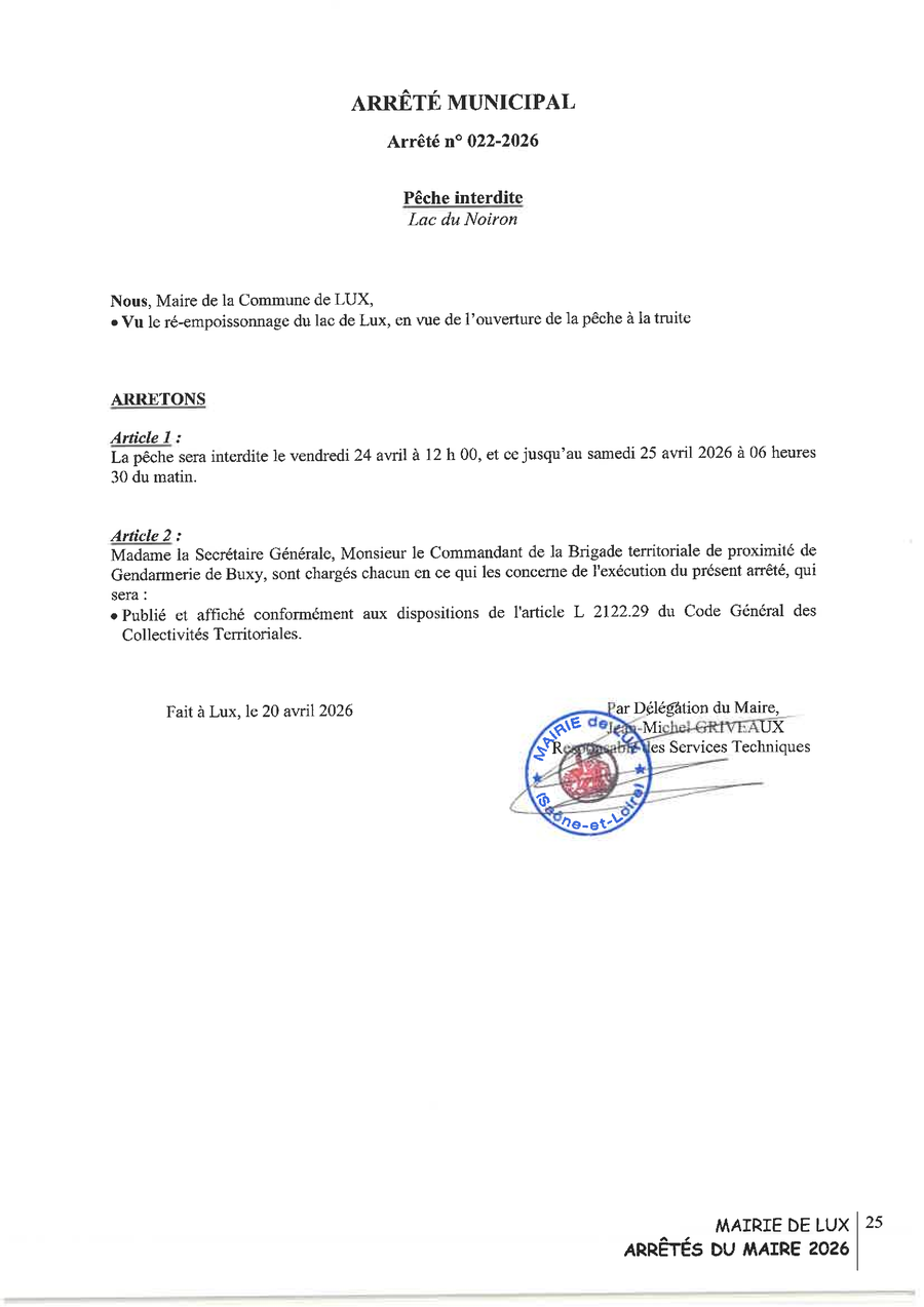 La pêche du lac est interdite du 23 avril jusqu’au 25 avril 6h.