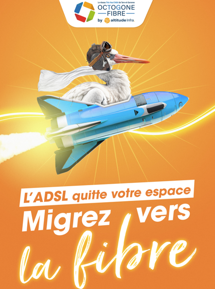 Le compte à rebours est lancé : J-303 !Dans exactement 303 jours, le réseau cuivre (l'ADSL) tirera sa révérence sur notre commune. Ce n'est plus une rumeur, c'est une réalité technologique : la fin d'une époque approche pour laisser place à la modernité.Pourquoi s'en occuper maintenant ?Évitez la saturation : N'attendez pas le dernier moment quand tout le monde voudra se raccorder en même temps.Stabilité garantie : Dites adieu aux coupures et aux ralentissements de l'ADSL.Confort immédiat : Télétravail, streaming 4K, jeux en ligne… sans latence dès aujourd'hui.🚀 Passez à la vitesse supérieure avec Octogone Fibre. Ne restez pas sur le Tarmac, rejoignez le Très Haut Débit !