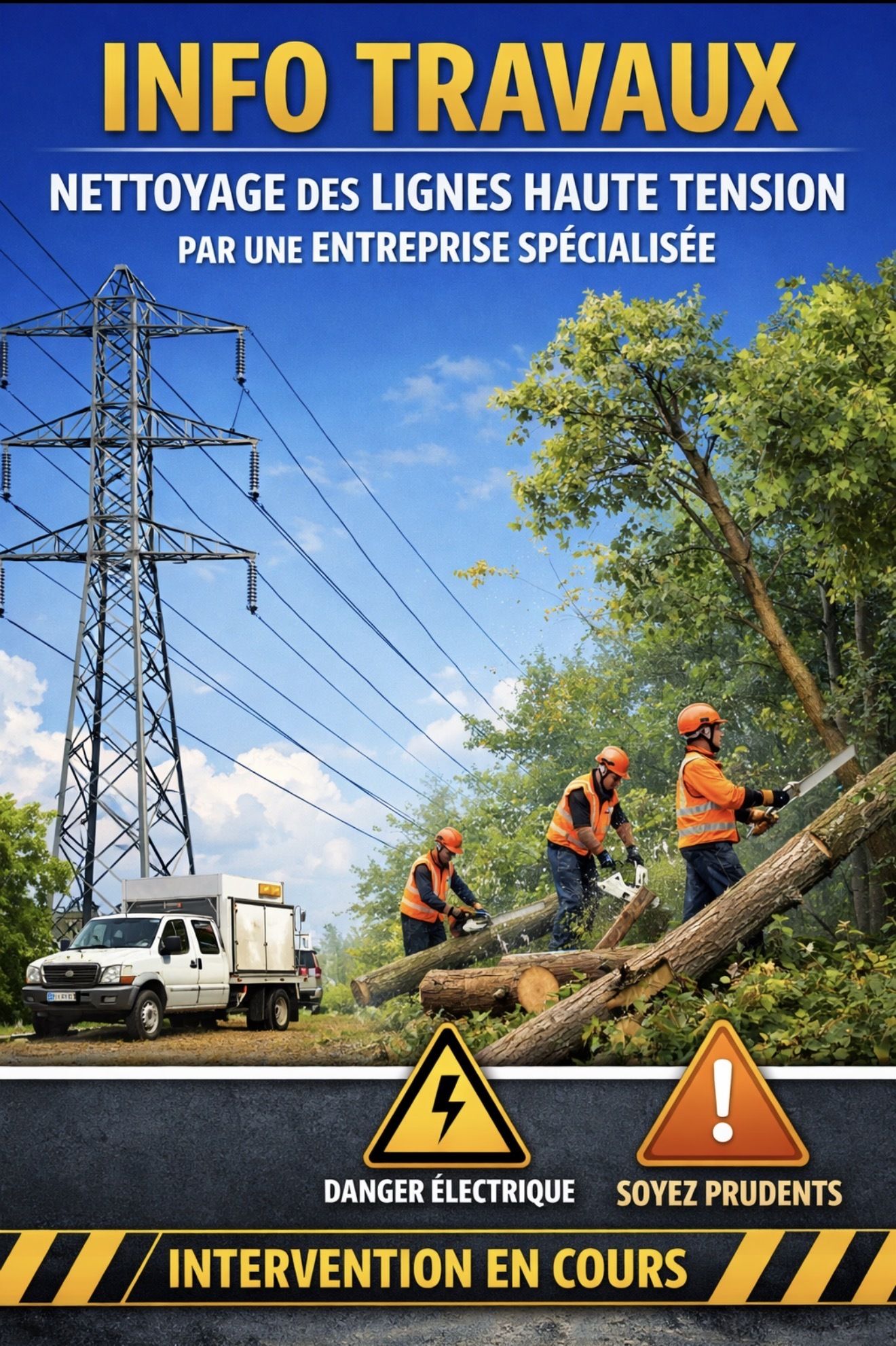 Travaux d'élagage des lignes haute tension