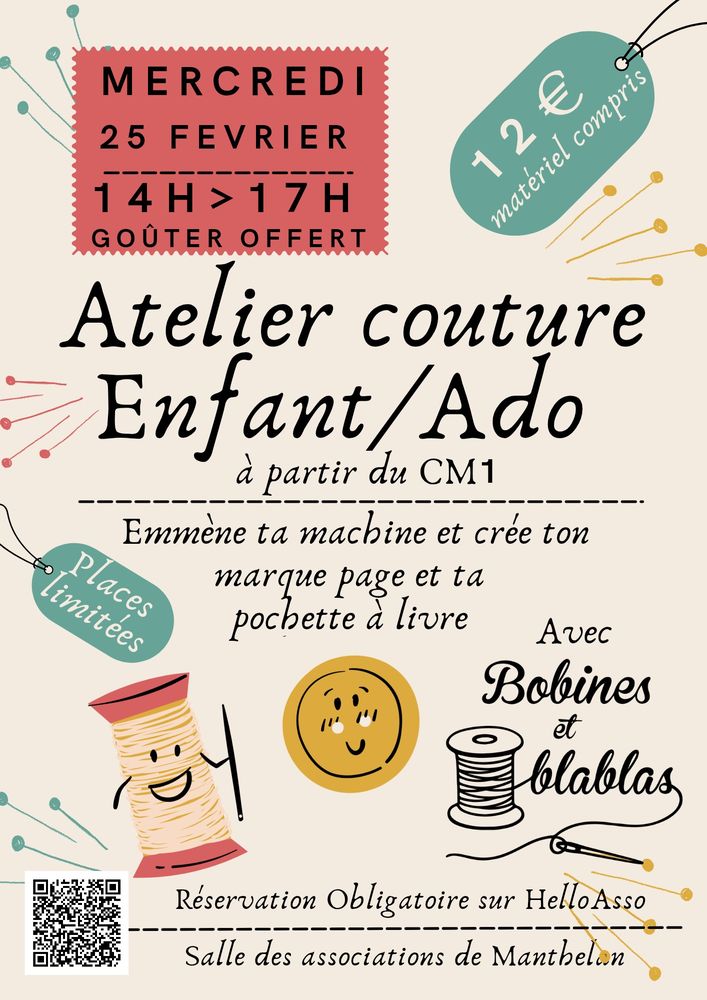 L'Association Bobines et Blabla organise un atelier couture en direction des enfants et ados
