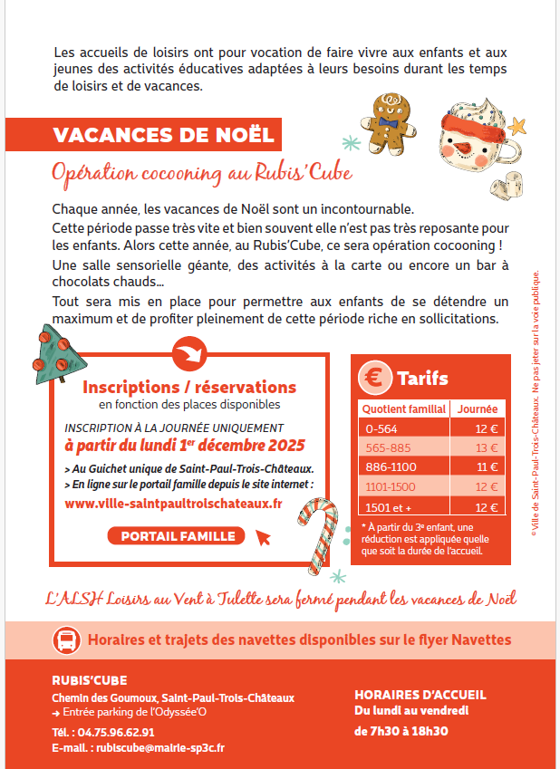 Période d’accueil : du 22 au 31 décembre 2025 (fermés les 25/12, 26/12, 1/01 et 2/01)