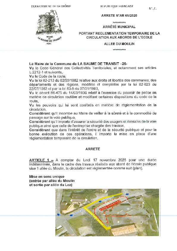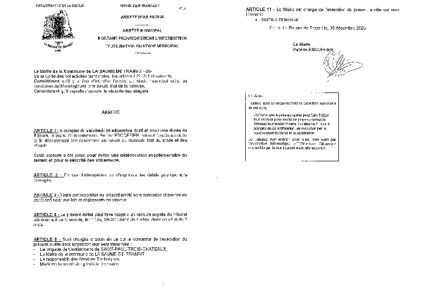 Un arrêté municipal sera prochainement affiché à cet effet.