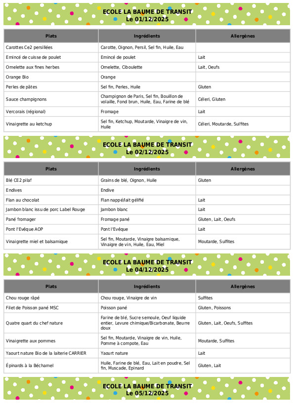 Les menus sont susceptibles de modifications suivant les approvisionnements.