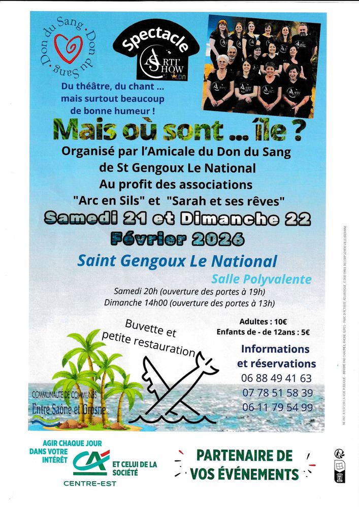Deux représentations sont prévues, le samedi 21 (20h00) et le dimanche 22 février 2026 (14h00) à la salle polyvalente de St Gengoux le Ntional .