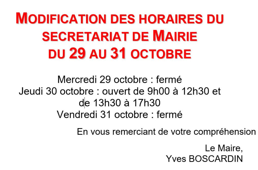Le secrétariat de la mairie sera