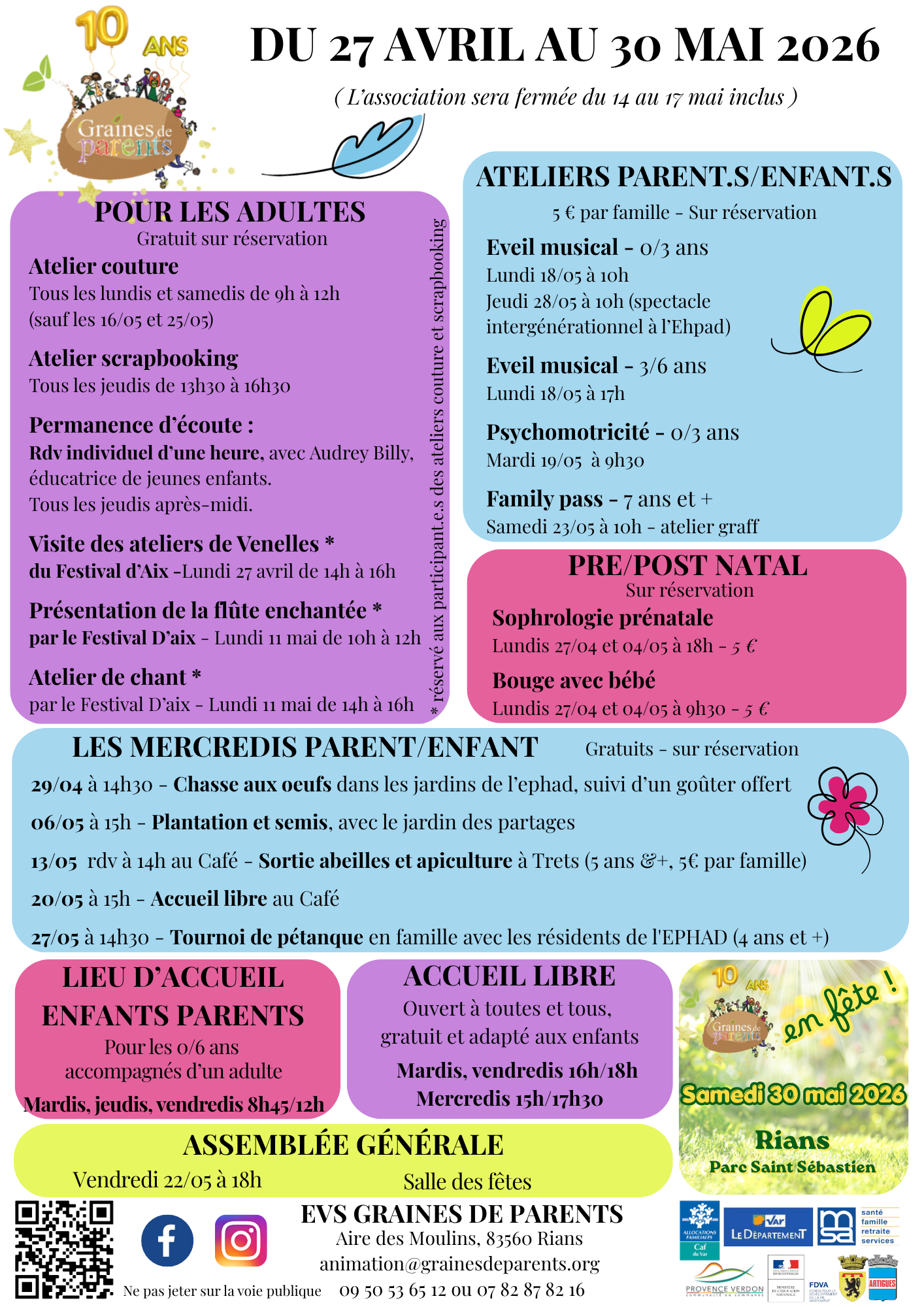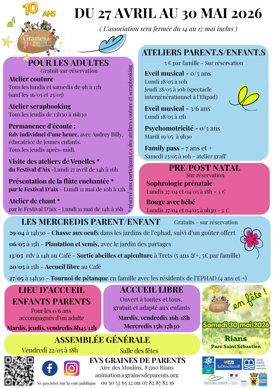 Découvrez le planning des activités de mai et juin