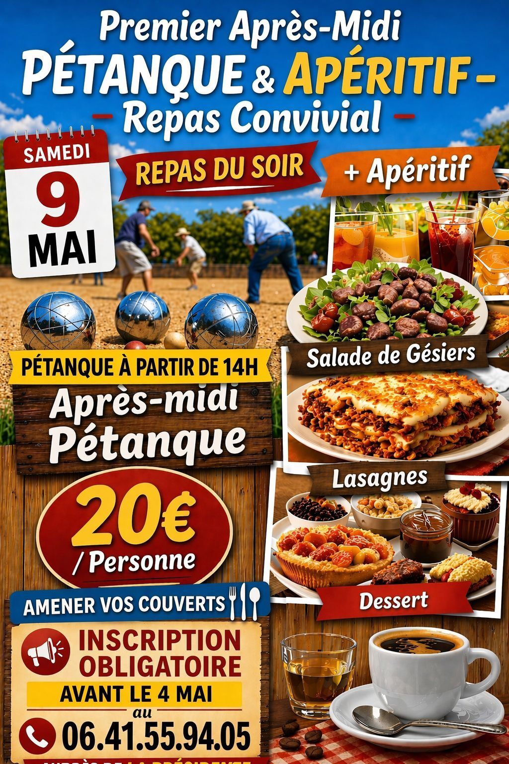 Au programme : pétanque dès 14h, apéritif et soirée gourmande 😋