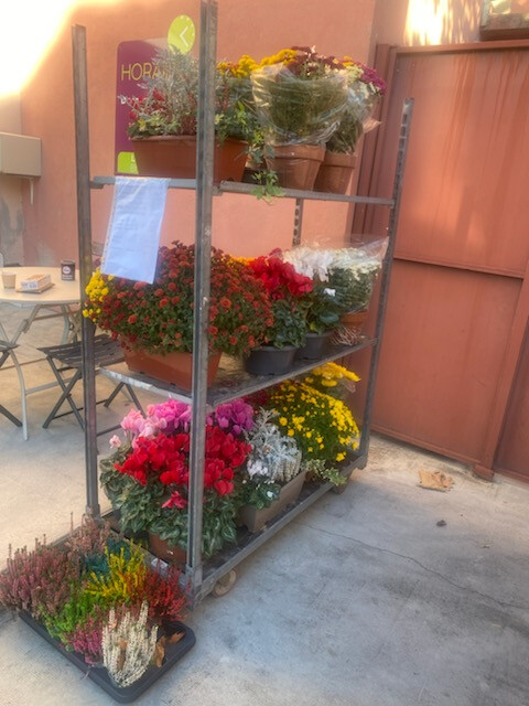 Chrysanthèmes, cyclamens, bruyères, … sont à la vente à l'épicerie.