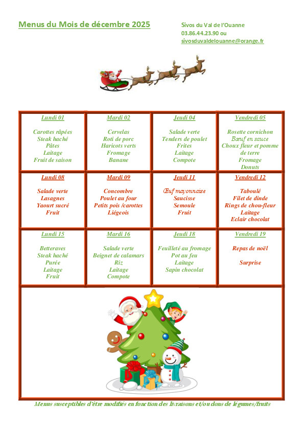 Menus pour les restaurants scolaires de Fontaines, Leugny et Moulins