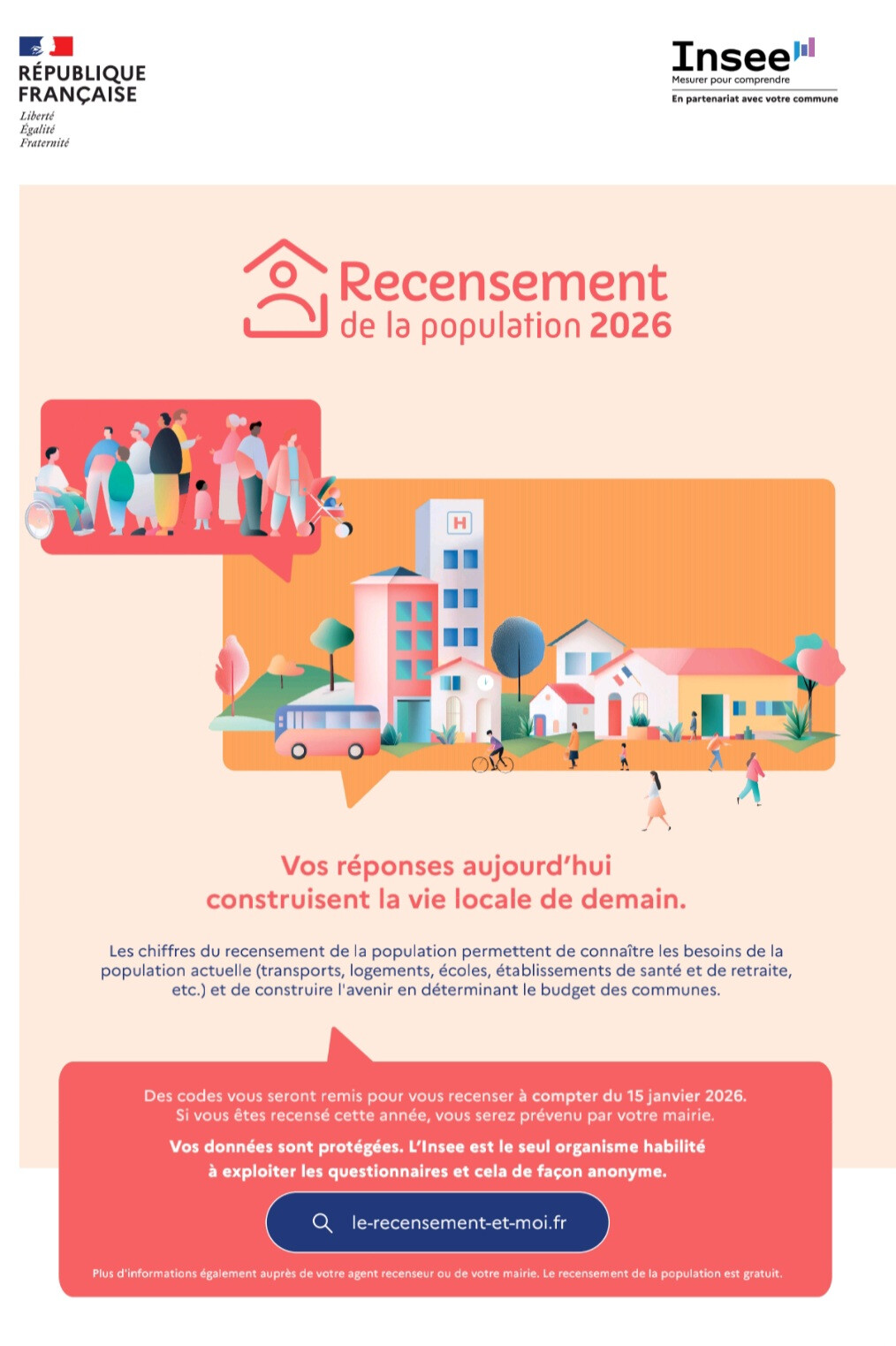 Ă partir du 15 janvier 2026, vous pourrez vous recenser en ligne grĂące aux codes remis.