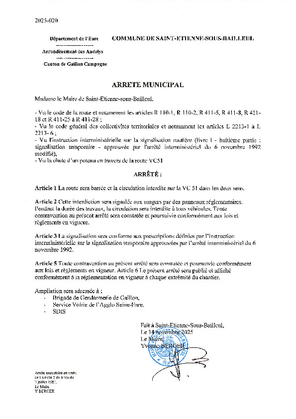 Suite à la chute de poteaux téléphonique, la voie communal VC 51 est barrée entre la rue Claude Monet et la RD 63
