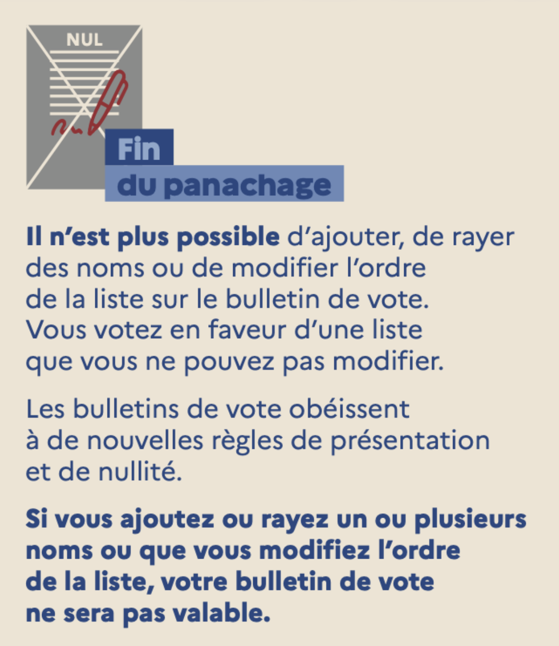 La liste des candidats aux sièges de conseiller communautaire figurera de manière distincte sur le même bulletin de vote que la liste des candidats au conseil municipal.