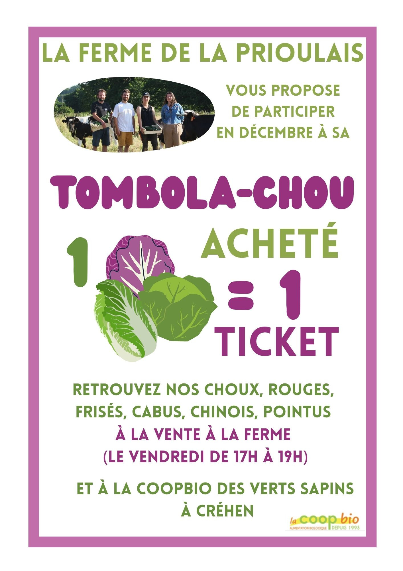 "La Ferme de la Prioulais vous propose de participer à sa TOMBOLA-CHOU, en achetant un chou lors de la vente à la ferme